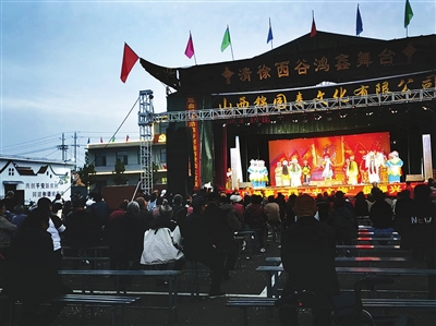 10月8日晚,清徐县南青堆村第二届“农文旅”促振兴庙会上,四乡八村的老百姓聚在该村文化广场欣赏晋剧表演。 鹏程 摄