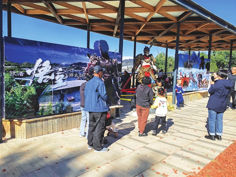 “赤尻马猴”是《黑神话:悟空》第三回的妖孽,其原型就是猴山上活蹦乱窜的猕猴,也引来众多孩子的观赏。“灵虚子”也就是狼,动物园有三个狼群,每个狼群都有一只头狼,它们虽然生活在圈养的动物园内,仍然保持着狼的凶猛与野性。“虎先锋”就是老虎,动物园有14只孟加拉虎,它们被放养在山上,使“卧虎山”上有了真正的老虎,游人可乘专用的车辆,亲眼目睹悠闲自在的孟加拉虎。“黑熊精”孩子们都熟悉,“熊出没”动画剧盛演不衰,让拟人化的黑熊走进孩子们的认知中。动物园也有14只黑熊,还有4只小黑熊,它们的憨态引得孩子们嬉笑不止。