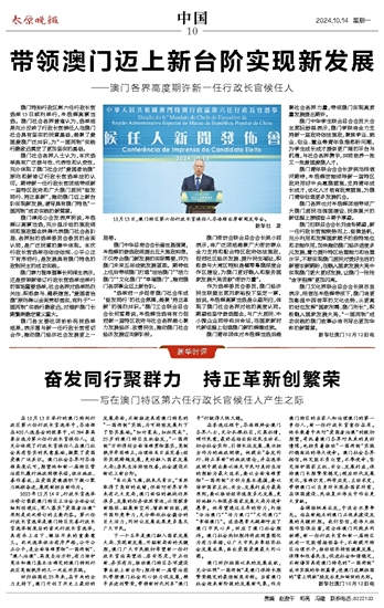 新华时评~~~——写在澳门特区第六任行政长官候任人产生之际
