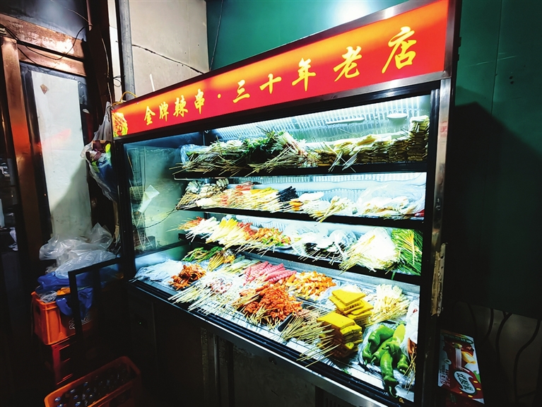 两口子骑个自行车,“跟卖鸡蛋一样”,一个木架子,一个小锅锅,在众纺路边上的学校门口支起了摊子。一根串一分钱,“一个人吃个五分钱、两毛钱”,顾客以学生、年轻人为主,经常围得里三层外三层。为了占住摊位,李长华与常来的另一家商贩竞价,最终以800元成交,“那会儿一个月才赚三四百块,决定了就要在这儿干。”