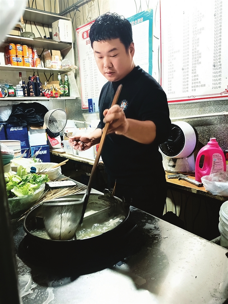 袁祖保一家子,从早上忙到中午准备。下午四五点开火,经常要营业到凌晨时分。“以前老顾客多,听声音就能知道是谁,”李长华回忆说,“现在新顾客多,各个年龄段的都有。”陈玲解释道,“我公公婆婆都不看手机,这几年经常有探店、拍视频的,吃着吃着就开始拍照,还要拉着我们说话。”