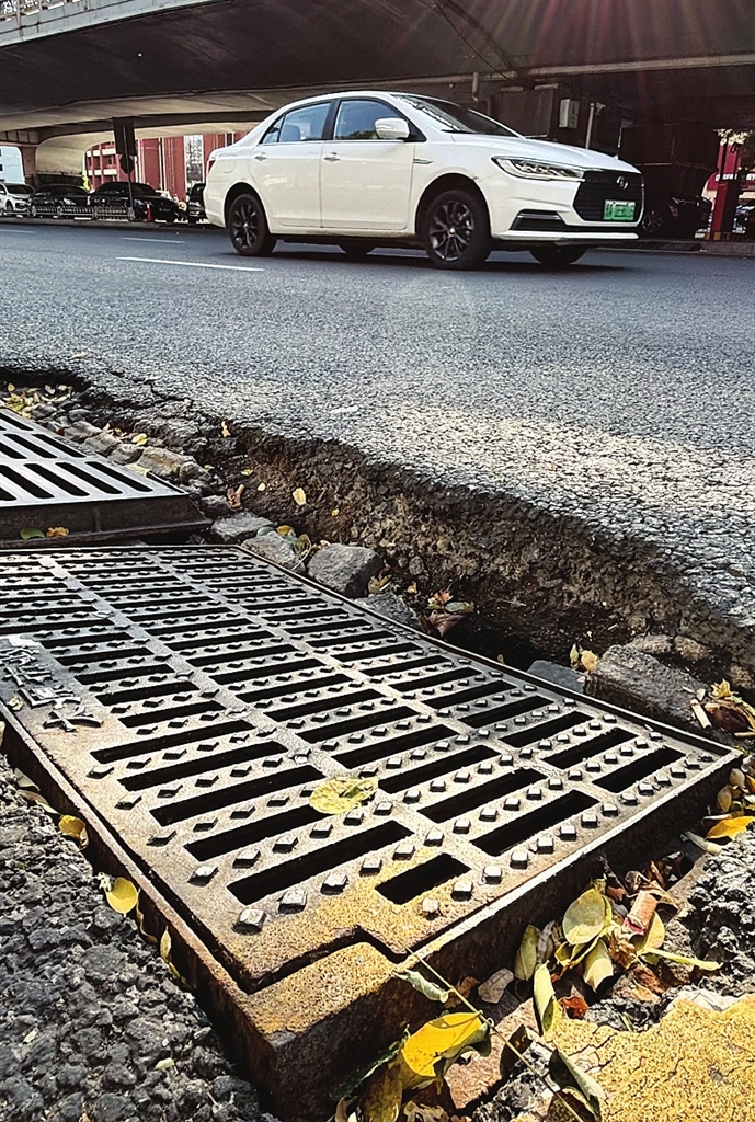 10月14日,在省城五一路府东街口,一处排水井盖下陷至路面10厘米左右,存在安全隐患。