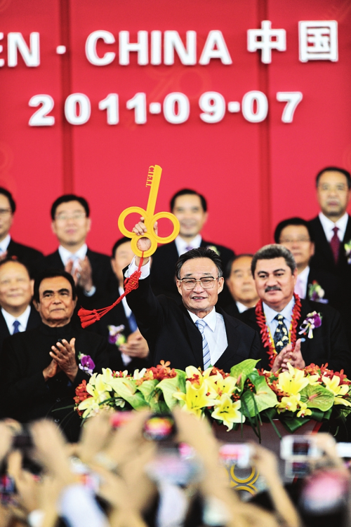 2011年9月7日,吴邦国同志在福建厦门出席第十五届中国国际投资贸易洽谈会开馆式。