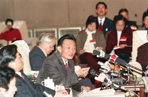 1994年3月,时任上海市委书记的吴邦国同志在全国两会上海代表团全团会议上。