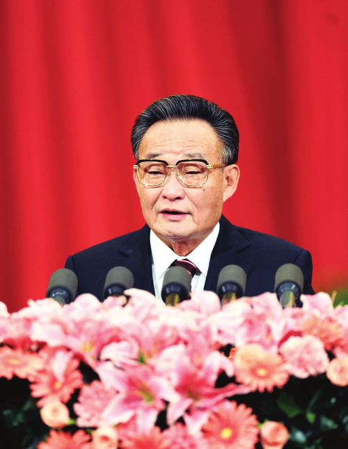 2002年11月,吴邦国同志在中共十六届一中全会上当选为中央政治局委员、常委。2003年3月,在十届全国人大一次会议上,他当选为全国人民代表大会常务委员会委员长,同月任全国人大常委会党组书记。2007年10月,他在中共十七届一中全会上再次当选为中央政治局委员、常委。2008年3月,在十一届全国人大一次会议上,他再次当选为全国人民代表大会常务委员会委员长,同月任全国人大常委会党组书记。他认真贯彻落实党中央决策部署,坚持正确政治方向,依法履行职责,不断增强工作实效,进一步丰富和发展人民代表大会制度的理论和实践,为发展社会主义民主、健全社会主义法制作出重要贡献。他强调,发展社会主义民主政治,必须把坚持党的领导、人民当家作主和依法治国有机统一起来,坚持和完善人民代表大会制度这一根本政治制度,必须坚持党的领导,决不能削弱党的领导、脱离党的领导、放弃党的领导,决不能搞西方那种多党制、议会制,中国对自己选择的政治发展道路要理直气壮地宣传,坚决抵制各种错误思潮影响。