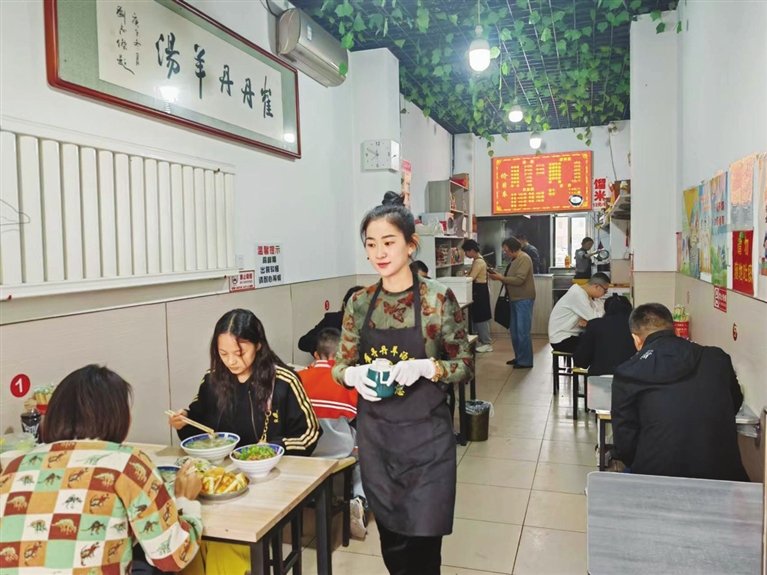 “我们的羊汤面放的是揪片,更符合多数人的喜好,煮起来也好熟,许多不爱吃粉条和面条的人特别喜欢这样吃。”临近中午,崔丹丹一边忙着招呼客人,一边介绍。