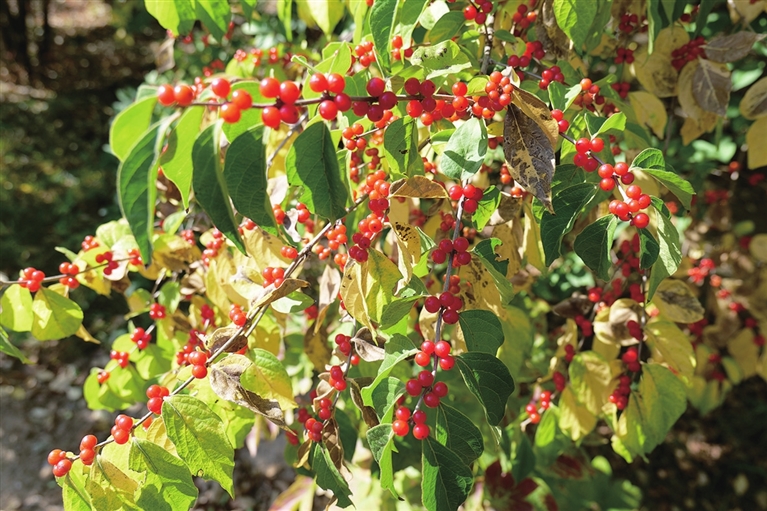 太原植物园也有不少金银木散布于园区各处,游客徜徉其间,可以看到那鲜亮的小红果与蓝天、白云、绿树相映成趣,鸟儿盘旋枝头叽叽喳喳轻啄果实,增添了几分生动与和谐。