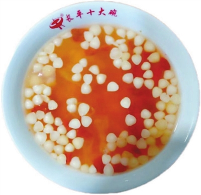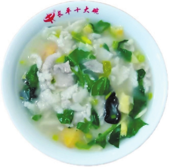 “长平十大碗每一碗都有不同的要求。第一碗鱿鱼汤,要求鱿鱼粉如桃花,薄如纸片;第二碗核桃肉,要求所炸酥肉状如核桃,汤色苍波荡漾;第三碗小酥肉,口感要酥烂可口,肥而不腻;第四碗水白肉,要求肉片宛如银鱼,跃于水面;第五碗扁豆汤,要求清香扑鼻,入口即化;第六碗软米饭,要求能够凸显黍米之香,还要做到甜糯可口;第七碗天鹅蛋,不仅要焦黄里嫩,还要绵味十足;第八碗水汆丸子,肉质紧实,清淡爽口;第九碗芥末粉皮鸡丝汤,要求粉皮嫩滑,蹿鼻提神;第十碗肠子汤,豆腐肥肠,要相得益彰!”谈及十大碗的制作标准,申天祥侃侃而谈,信手拈来,这些标准早已在岁月中融入他的血脉。