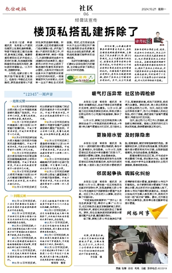 本报讯(记者 韩睿 通讯员 张秀莲)6户居民在楼顶上私搭乱建彩钢棚,导致节能改造工程无法推进,影响施工进程。南寨街道和朝阳社区多次组织人员进行协调,向违建居民解释宣传民法典相关规定,最终居民同意配合。10月中旬,违建被拆除。