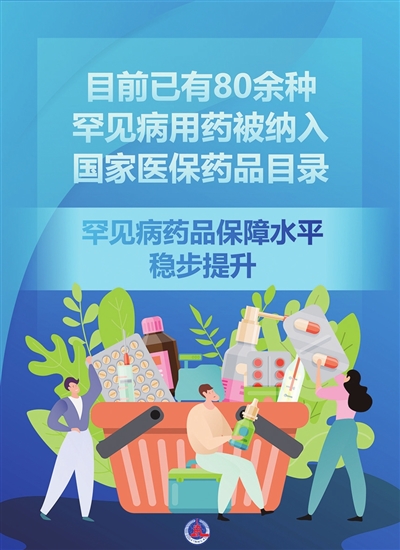 2021年,国家医保药品目录调整新增治疗脊髓性肌萎缩症(SMA)的重要药品诺西那生钠注射液;2023年的目录调整新增15个目录外罕见病用药,覆盖16个罕见病病种,填补了10个病种的用药保障空白,戈谢病、重症肌无力等疾病治疗用药被纳入目录……目前已有80余种罕见病用药被纳入国家医保药品目录,罕见病药品保障水平稳步提升。