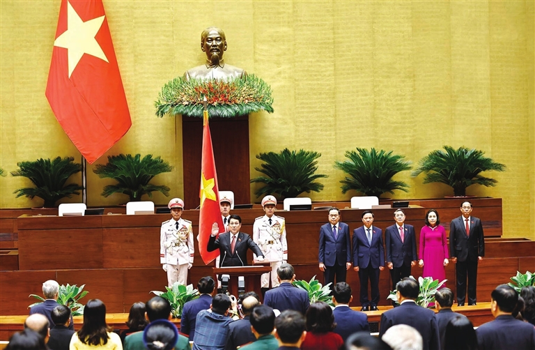 10月21日,梁强在越南首都河内宣誓就任越南国家主席。