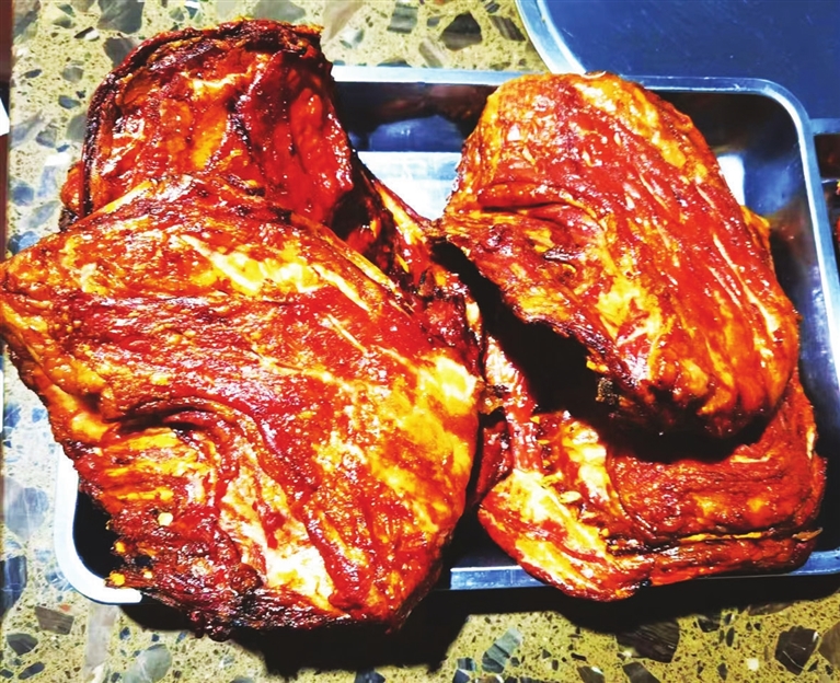 “最初开店没经验,后来都是自己一点点摸索出来的。”赵良东说,光烤羊排备料就没少走弯路,腌制时不是盐放多了齁咸味苦,就是烤时火候没掌握好肉质干柴,为了达到最佳的口感,他不断尝试,没烤好的羊排又不能浪费,自己吃、请朋友吃,有段时间,他看到羊肉就反胃。好在,经过历练的他,如今烤羊排技法娴熟,腌肉调味料的配比、炙烤火候分寸的拿捏,不在话下。