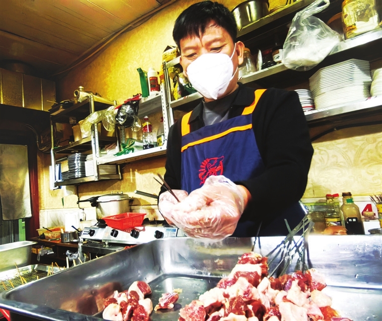 “天真冷,烤1斤现穿羊肉、上个羊蝎子锅,再炒盘方便面,快点上!”老顾客张伟成点菜直奔主题。老板赵良东随声应和:“好嘞,稍等。”