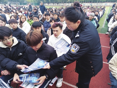10月21日,公安小店分局黄陵派出所反诈讲师联合禁毒社工,在省财贸职业技术学院开展安全普法宣讲教育活动。民警通过讲解典型案例、发放宣传手册等方式,讲解防骗常识及受骗后快速补救方法,以及禁毒、反恐等知识,助力师生提高自我保护能力、增强安全防范意识。 刘友旺 康婷 摄影报道