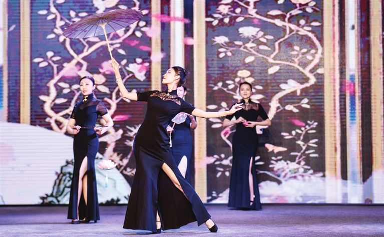 作为中华民族的传统服饰,旗袍承载着丰富的文化内涵和独特的艺术魅力。旗袍文化是中华传统文化的重要组成部分,此次旗袍文化研究院的成立,旨在传承和弘扬旗袍文化,提升中国女性文化素养和审美水平,促进豫商文化与旗袍文化的融合发展,促进文化交流,增强文化自信。活动现场,伴随着悠扬的音乐,旗袍秀《入画旗韵》《岁月芳华》《水韵江南》,军装秀《祖国颂》,歌曲《节日的歌》,太原市市级非遗传统喜娘礼仪婚俗展演,豫剧表演等节目依次亮相。精彩绝伦的节目、别出心裁的创意、色彩斑斓的旗袍等,赢得阵阵喝彩。