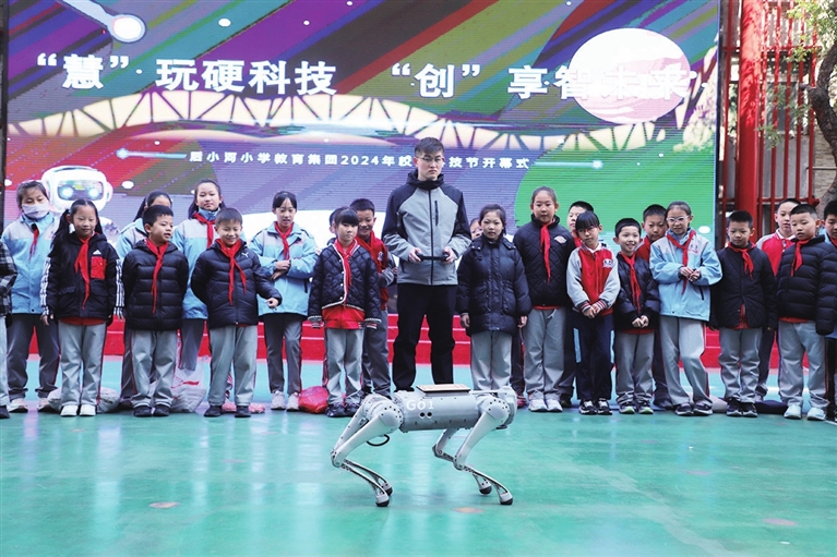 10月23日,后小河小学举行“慧”玩硬科技 “创”享智未来——2024年校园科技节开幕式。活动中,专业老师带着同学们进行科学实验,体验实际操控机械狗,感受科技的魅力。 张昊宇 梁凤 摄影报道