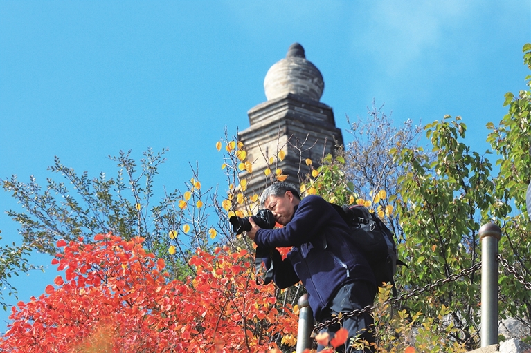 “崛(山围)红叶”居古晋阳八景之首。循傅山先生脚步,一行人登高望远,一丛丛、一簇簇、一片片,惊艳着每一次快门的按动。一双眼流连身旁,红的枫、黄的栌、青的松,灵秀着每一帧流动的画面……