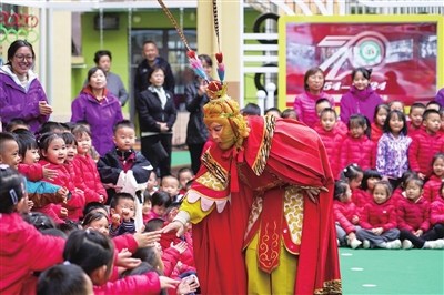 活动一开场,“孙悟空”的精彩表演瞬间吸引了小朋友们的目光。“孙悟空”灵动的身姿、勇敢的形象,仿佛把孩子们带入了奇幻的神话世界,他们目不转睛,不时发出阵阵惊叹声和欢呼声。
