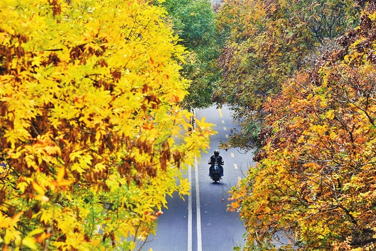 10月22日,省城滨河西路两侧的树木披上彩装,成为一道别样风景线。 邓寅明 摄