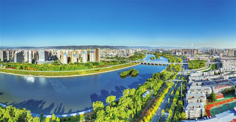 10月28日,汾河两岸色彩斑斓,与晴朗的天空构成了一幅生态美景。 从市气象台了解到,本周我市天气以晴为主,最低气温有所下降,市民注意防寒保暖。