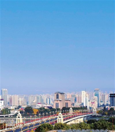 1至9月太原收获166个好天气,优良率为60.6%,优良天数比去年同期增加7天;重污染天数2天,比去年同期减少3天。图为10月29日,秋色中的迎泽大桥与城市景观构成美丽图画。