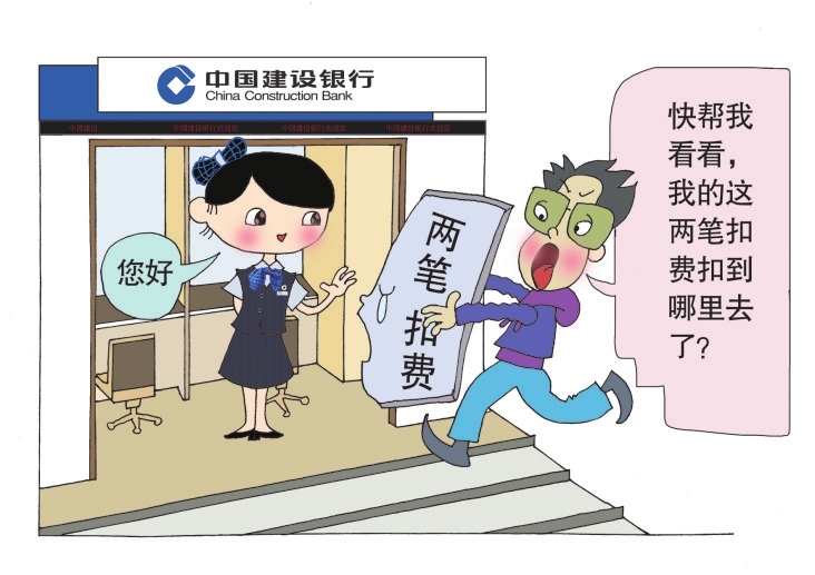 ①一位客户匆忙走进建设银行,急切地说:“快帮我看看,我的这两笔扣费扣到哪里去了?”