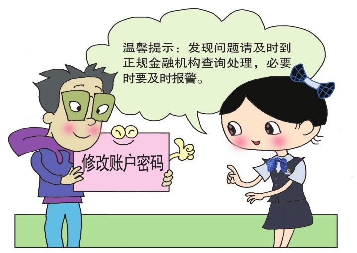 ⑤大堂经理及时为客户修改了账户密码,并温馨提示:发现问题请及时到正规金融机构查询处理,必要时要及时报警。