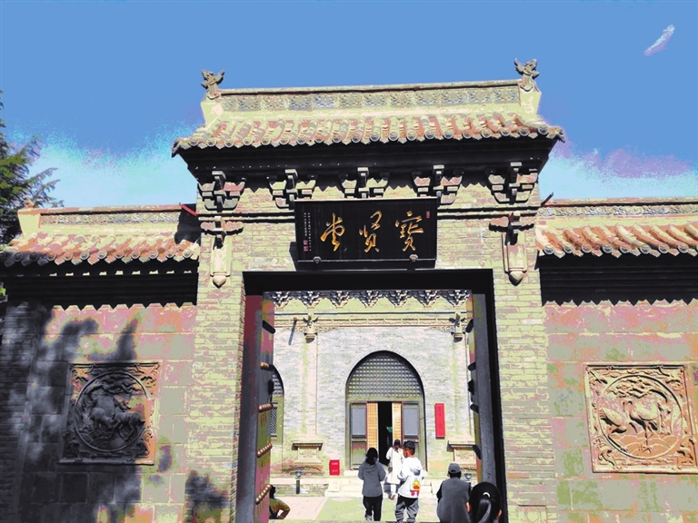 寺院西区为宝贤堂刻石展馆,是一处具有明代建筑风格的四合院,四个展厅的外观全为砖仿木结构,收藏有明代石刻珍品《宝贤堂集古法帖》180余通、清代著名石刻《古宝贤堂法帖》36通和刻于清乾隆二十七年(1762)的苏东坡醉笔石刻《念奴娇·赤壁怀古》石刻3通。