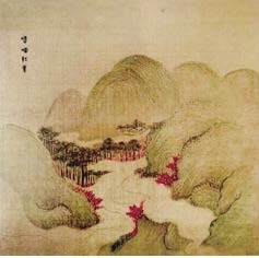 晚年的他不止一次遥望西山:绿云绿雾绿珊珊,冷浸幽人彻骨寒。嚼雪滩头松桦下,一峰青插半天看。