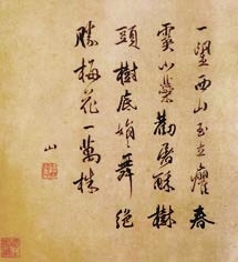 而且,傅山还以《霜红余韵》为题,作过一首四言诗,有云:“明河之湄,不言不笑。水流花开,月朗雪香。”落款为“侨侨书”,可知作诗题写已在甲申国变之后,侨居流寓之时,慨然追忆他惦念不已的崛(山围)霜红和隐于其间的青羊庵。