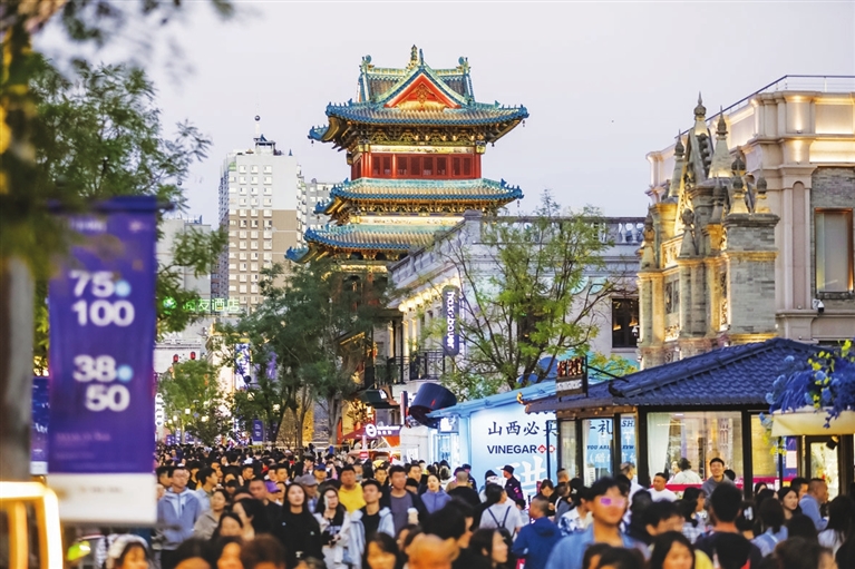 钟楼街上的古韵新潮让人流连忘返,食品街上热气腾腾的丸子汤、酸香绵长的老陈醋、双合成的点心等都是舌尖上的太原味道。