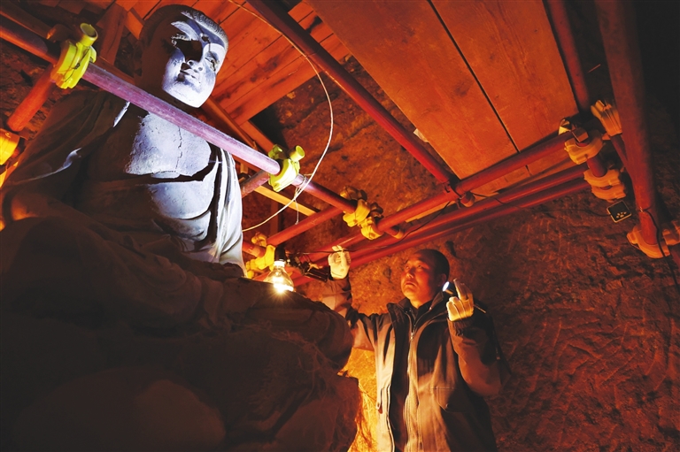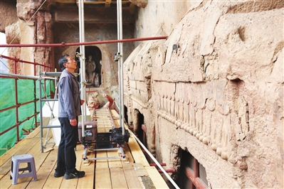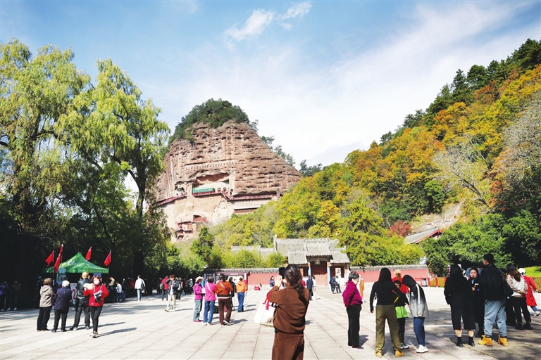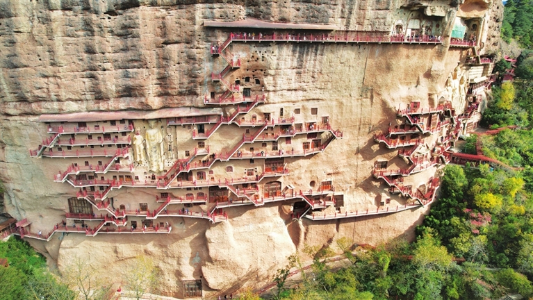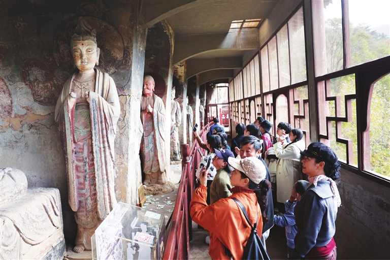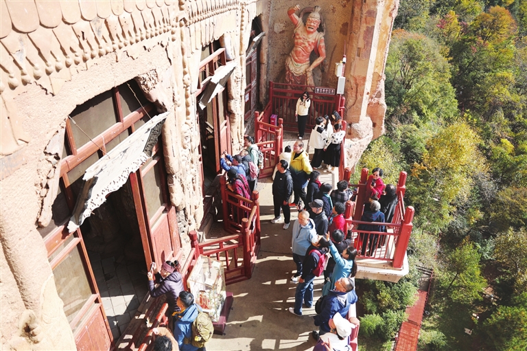 近年来,麦积山石窟艺术研究所等文物保护部门持续加大对麦积山石窟的抢救性保护和预防性保护工作力度,针对石窟塑像和壁画存在倾斜、松动、裂缝、空鼓、起甲等病害,积极探索现代科学技术手段与传统文物修复技艺相结合的保护修复新途径,同时加强日常巡查监测和修缮维护。据介绍,近三年来,麦积山石窟已有29个洞窟获得保护加固,不断完善的保护修复方案让麦积山石窟千年瑰宝持续焕发光彩。 麦积山石窟,因其形似麦垛而得名,是“中国四大石窟”之一,也是世界文化遗产“丝绸之路:长安-天山廊道路网”的遗产点之一,被称为“东方雕塑陈列馆”。