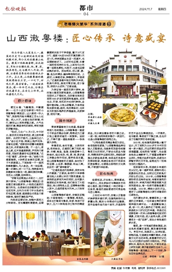 “以特色徽菜和精品粤菜为定位,食客选择性更强。”山西徽粤楼品牌创始人王银楼说,在继承和发扬传统徽粤菜文化的同时,不断优化菜品与服务,特聘资深专业厨师团队,持续创新推出多款经典菜肴,将菜品的色香味发挥到极致,既满足食客对不同菜系的美食需求,也营造出独特的文化氛围,不断提升体验感。