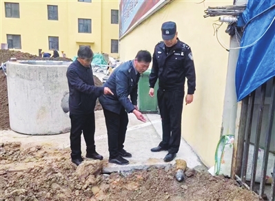 当天上午,桃园四巷一处工地的工人向庙前派出所求助,称工地土方里发现一个疑似旧炮弹的“铁疙瘩”。接警后,民警迅速赶到现场。原来,这是一处正在进行雨污分离改造的公司院子,挖掘机作业时挖到这个“铁疙瘩”。民警注意到,这枚炮弹呈圆柱体,顶部还有引信,存在极大的安全隐患,随即联系专业爆破技术人员前来处置。