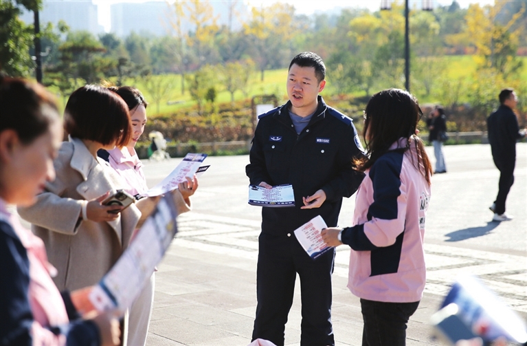 11月8日,郝庄派出所民辅警在双塔公园开展反诈宣传,手把手教游客下载“国家反诈中心”App,并向大家分享如何辨别和防范电信诈骗,着力提高反诈宣传的覆盖面。 辛欣 白林杰 摄影报道