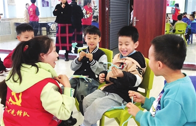 在志愿者们的悉心指导下,小朋友们巧妙地把扭扭棒弯曲、缠绕,很快,一根根普通的扭扭棒在孩子们的手中逐渐变成了各式各样的手工作品。有的孩子制作出色彩斑斓的发卡,有的则做出了精美的手环,还有的孩子创作出栩栩如生的花朵,每一件作品都凝聚着孩子们的智慧和创意。小朋友们手拿自己的得意作品,迫不及待地向同伴和志愿者展示,现场充满欢声笑语。