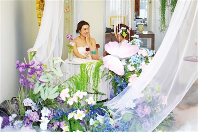 11月12日,万柏林区九院新村,一家婚纱主题下午茶店内,几位顾客正在享受惬意的下午时光。为满足消费群体的多元化、个性化需求,一些商家加快创新步伐,以增加竞争力。 邓寅明 摄