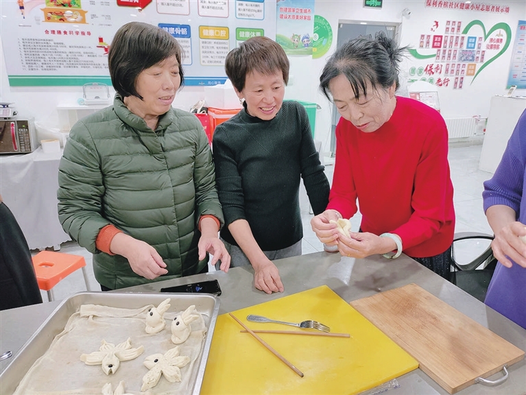 活动现场,面点老师首先向居民们讲解花馍的历史、寓意及文化内涵,紧接着指导大家如何制作花馍。从和面到发面、从压型到进锅,老师手把手传授居民制作工序和技巧。老师教得仔细、大家听得认真,不时互动交流,碰撞出了许多创意“金点子”。动手实操环节中,大家摩拳擦掌,迫不及待地想“露一手”。揉面、擀面、做造型、上锅蒸……不一会儿,一个个栩栩如生、饱含幸福美好寓意的花馍新鲜出炉。看着自己的作品,大家脸上洋溢着幸福的笑容。手捧着自己制作的花馍,居民宋阿姨开心地说:“感谢社区搭建这么好的平台,让我们一个个都变成了心灵手巧的人。这么漂亮的花馍,还真是舍不得吃。”