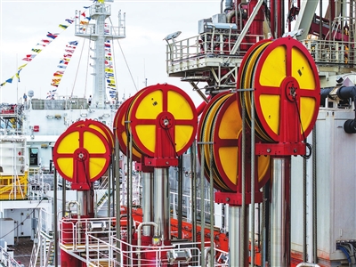 为此,“梦想”号配制了全球首台兼具油气勘探和岩心钻取功能的液压举升钻机,顶驱的举力达到907吨,具备4种钻探模式和3种取心方式,可满足大洋钻探取心和深海大洋矿产资源勘探开发等不同作业需求,综合钻探效率、硬岩钻进能力大幅提升,钻采系统国际领先。