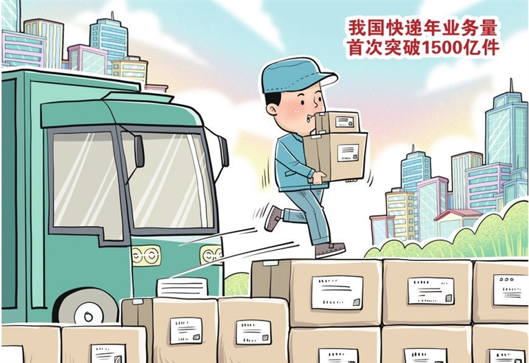 国家邮政局监测数据显示,截至11月17日,我国快递年业务量首次突破1500亿件。(新华社 11月18日)