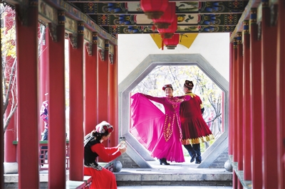 11月18日,冬日里的迎泽公园内,舞蹈爱好者展现优美舞姿,乐在其中。 牛利敏 摄