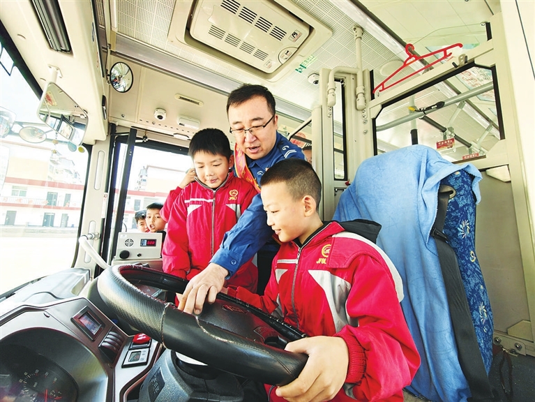 11月20日,太原公交四公司五车队与解放北路小学开展平安乘车主题活动。在司乘人员的引导下,孩子们了解公交车知识,学习如何安全乘车。 郭苑甫 摄