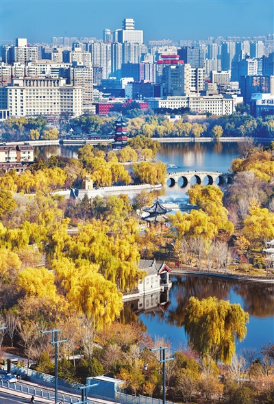 11月21日,暖阳之下的迎泽公园,初冬景色绚烂多姿。