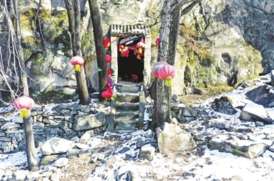 磨里石窟位于长治市武乡县故城镇磨里村东侧半山腰上,石窟开凿在长约6.5米的平整崖壁上,现存1窟1龛,所在岩体为浅灰色砂岩。村民在石窟周围修建了院子与围墙,窟门正对的北侧围墙砌筑有大清咸丰二年(1852)的长方形石碑,内容为出资重修石窟的人员名单。