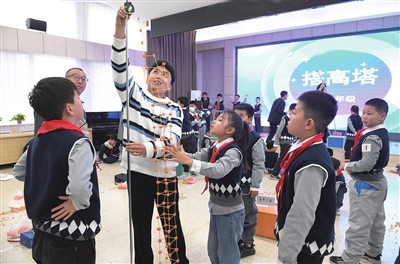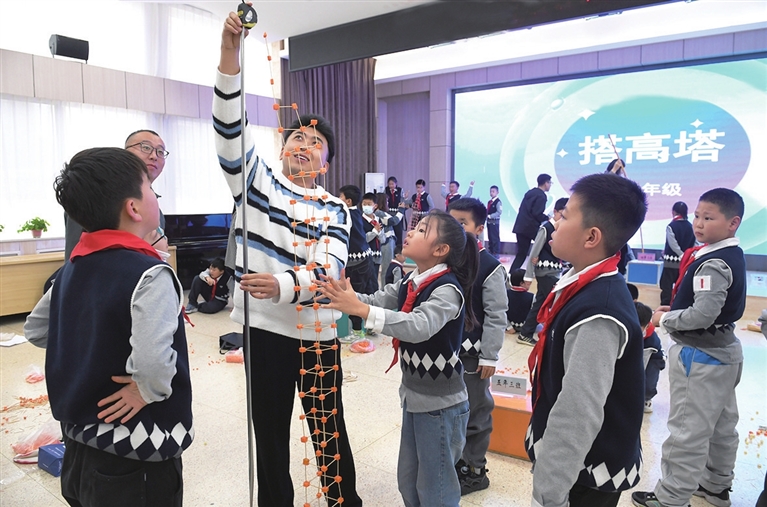 11月22日,迎泽区双西小学举办搭高塔比赛。各班级参赛队选手通过比赛锻炼了动手能力。 牛利敏 摄