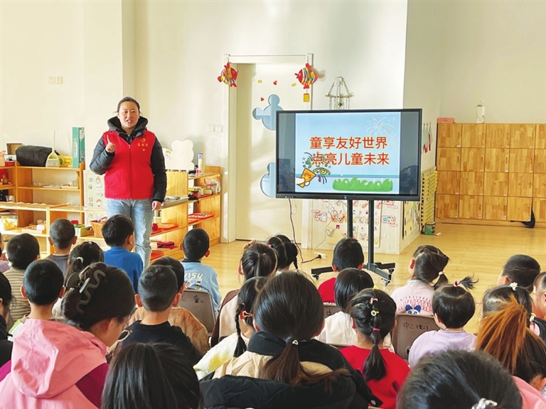 11月20日,迎泽区郝庄镇松庄社区开展“童享友好世界 点亮儿童未来”世界儿童日主题活动。活动中,志愿者和老师组织孩子们聊梦想、讲心愿,为孩子们普及生活常识、健康知识、安全守则。