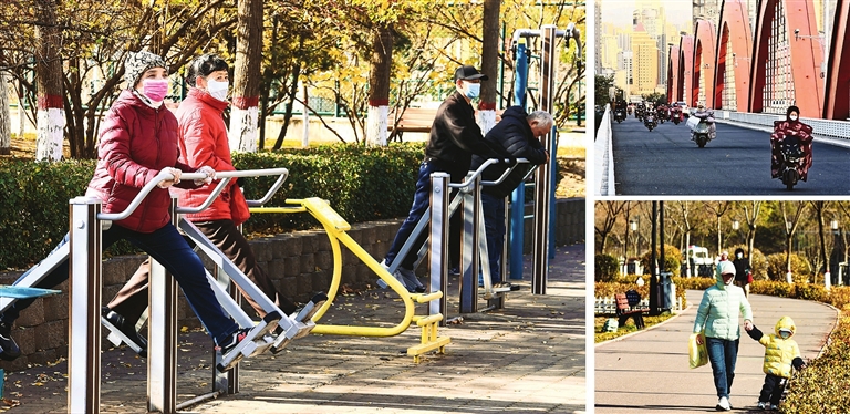 11月25日,寒潮侵袭我市。市气象台于24日发布寒潮蓝色预警信号,最低气温降至-5℃,市民出行注意防寒保暖。