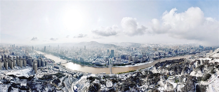 这是11月25日拍摄的甘肃省兰州市雪后风光(无人机照片)。