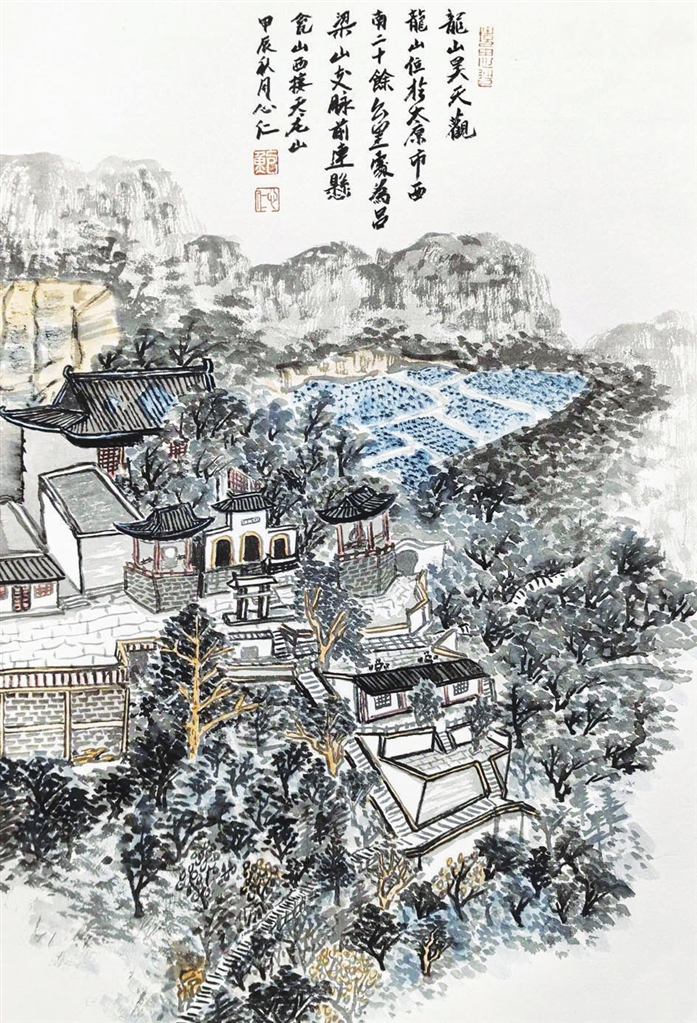 龙山昊天观(写生画) 鲍心仁 绘