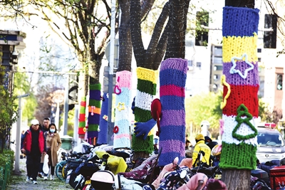 11月27日,并州东街部分行道树穿上“毛衣”,为冬季增添一抹亮色。